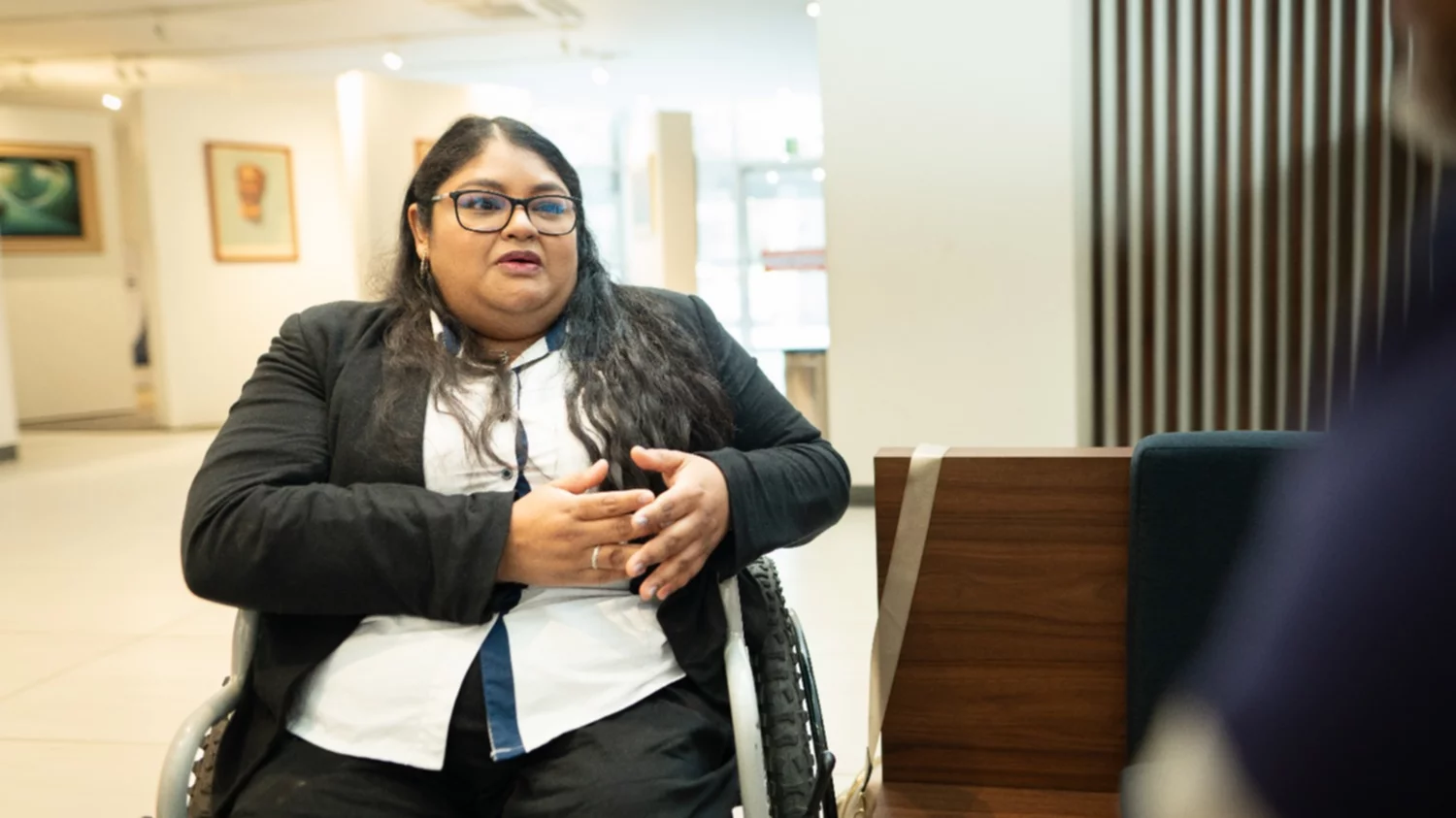 Ese cambio también lo ubica en el entorno físico. Cuenta que cuando ingresó ya había rampas, pero no todas las adecuaciones que hoy existen. Con el tiempo, el edificio en zona 4 incorporó baños accesibles en cada nivel y otras modificaciones pensadas para facilitar la movilidad y responder a emergencias. En su relato, esas adaptaciones no aparecen como accesorias, sino como parte de las condiciones que le han permitido trabajar con continuidad durante más de una década.