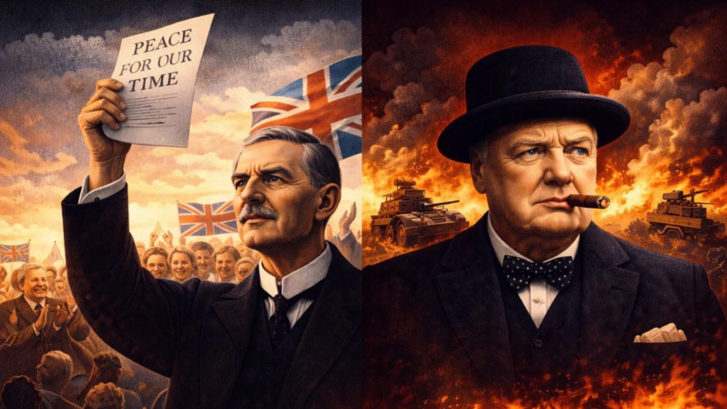 El 30 de septiembre de 1938, Neville Chamberlain, primer ministro del Reino Unido entre 1937 y 1940, regresó a Londres tras haber firmado el Acuerdo de Múnich con Alemania. Fue recibido como un héroe. Este acuerdo permitió a Alemania anexar los Sudetes, una región de Checoslovaquia. En Londres hubo caravanas, desfiles, y bombos y platillos que celebraban a Chamberlain por haber evitado una guerra.