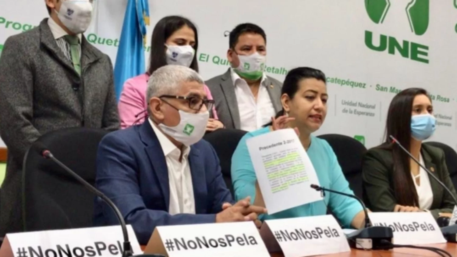 Un grupo de diputados de la Unidad Nacional de la Esperanza (UNE) mostraron su rechazo a la intención de la Junta Directiva de suspender el trámite del presupuesto 2021 de forma unilateral.