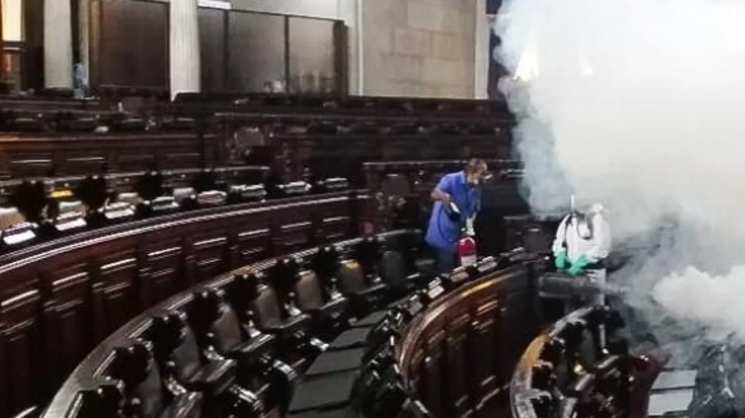 Este miércoles se realiza una desinfección en el hemiciclo parlamentario como medida de prevención por el covid.19.