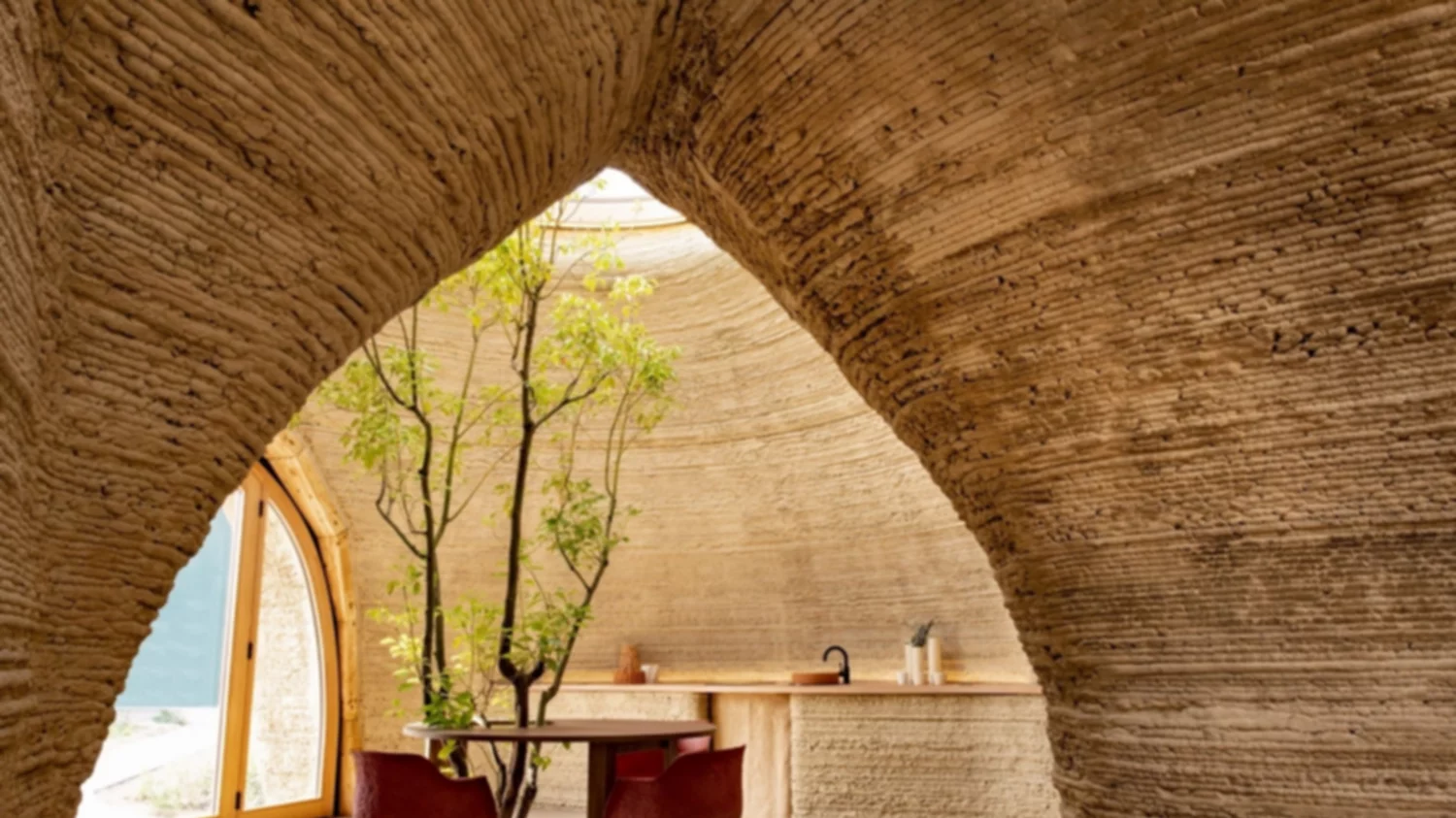 El suelo de la zona se utilizó para hacer sus paredes de 350 capas. En tanto, el caparazón curvo es completamente biodegradable.